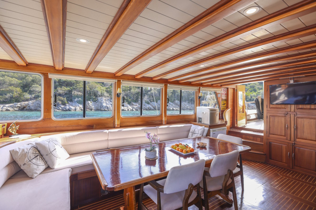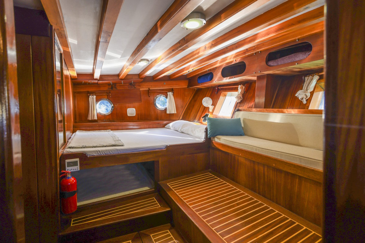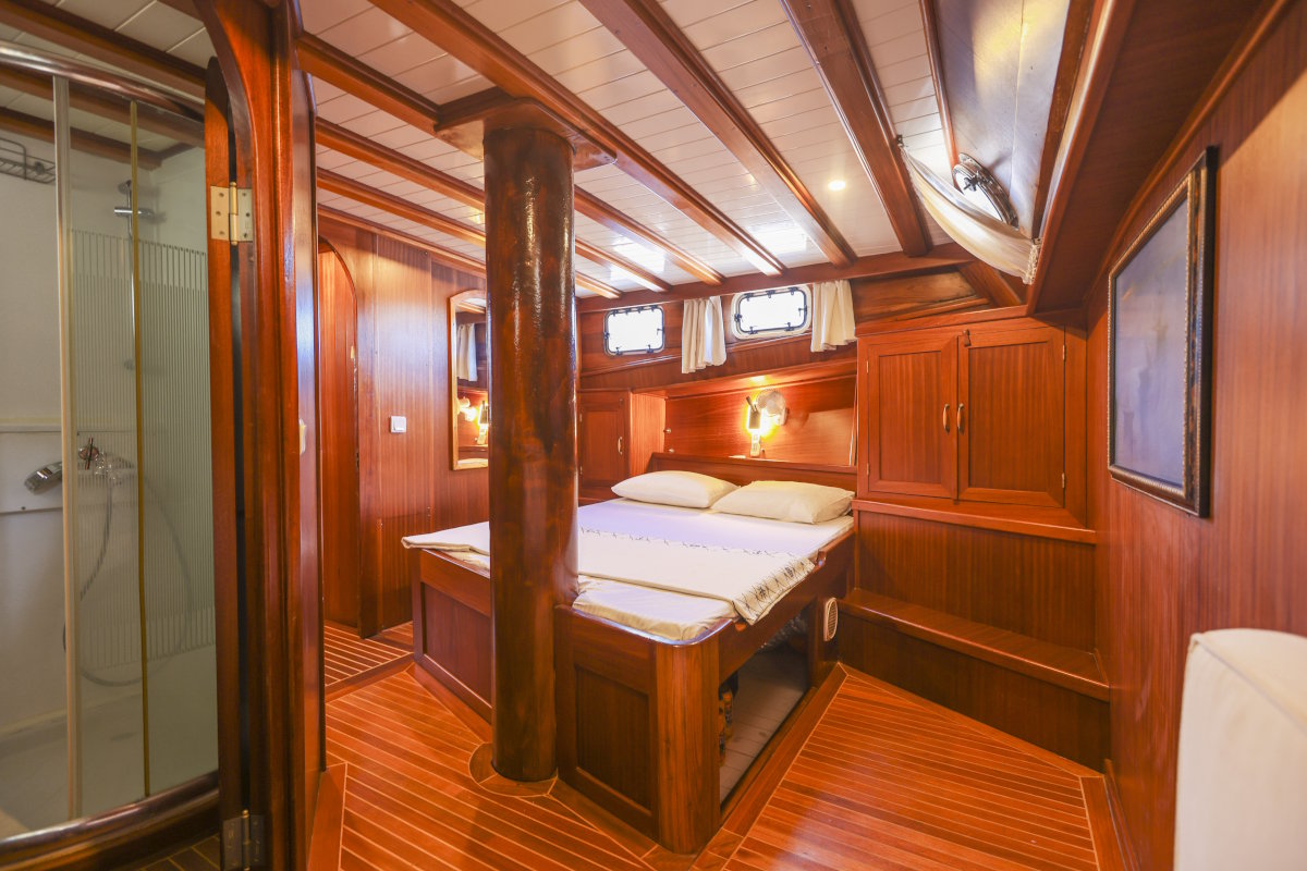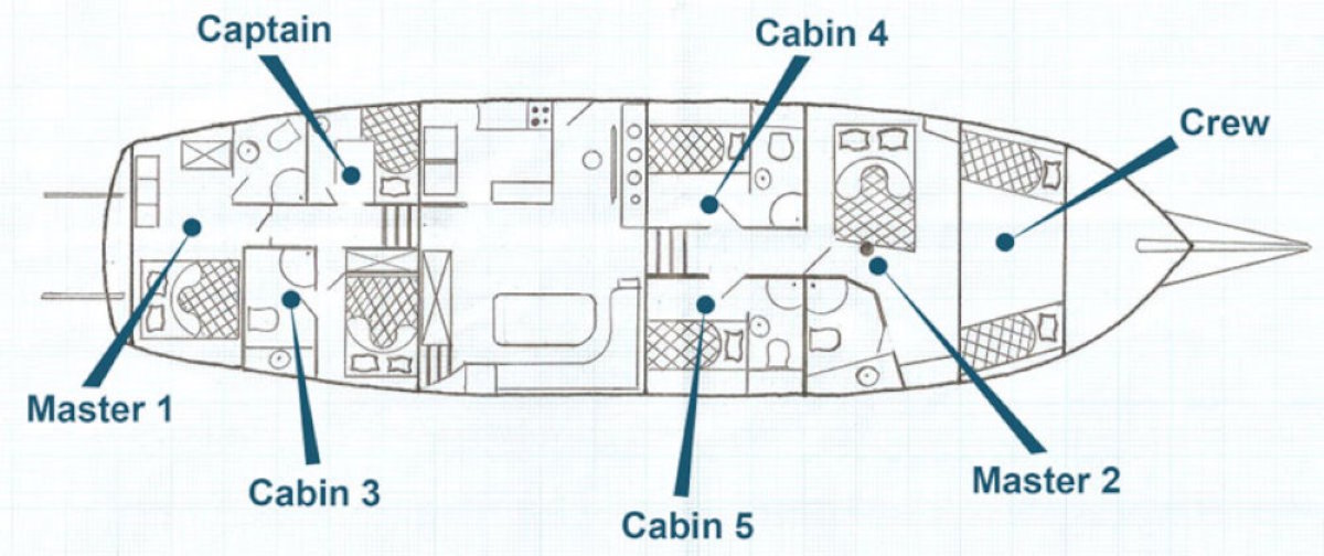 - 5 cabines (2 cabines de master avec lits doubles, 3 cabines avec lits doubles).