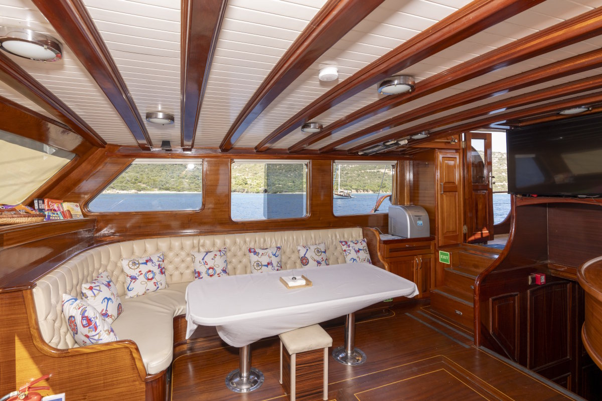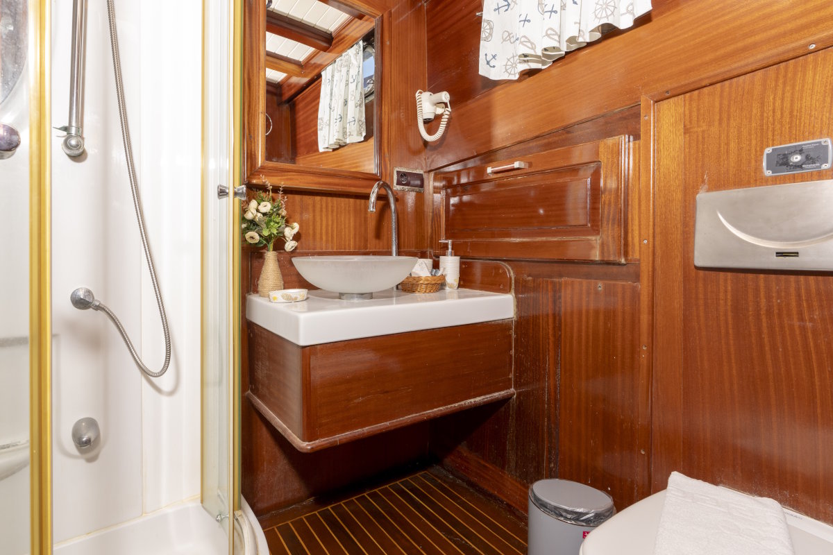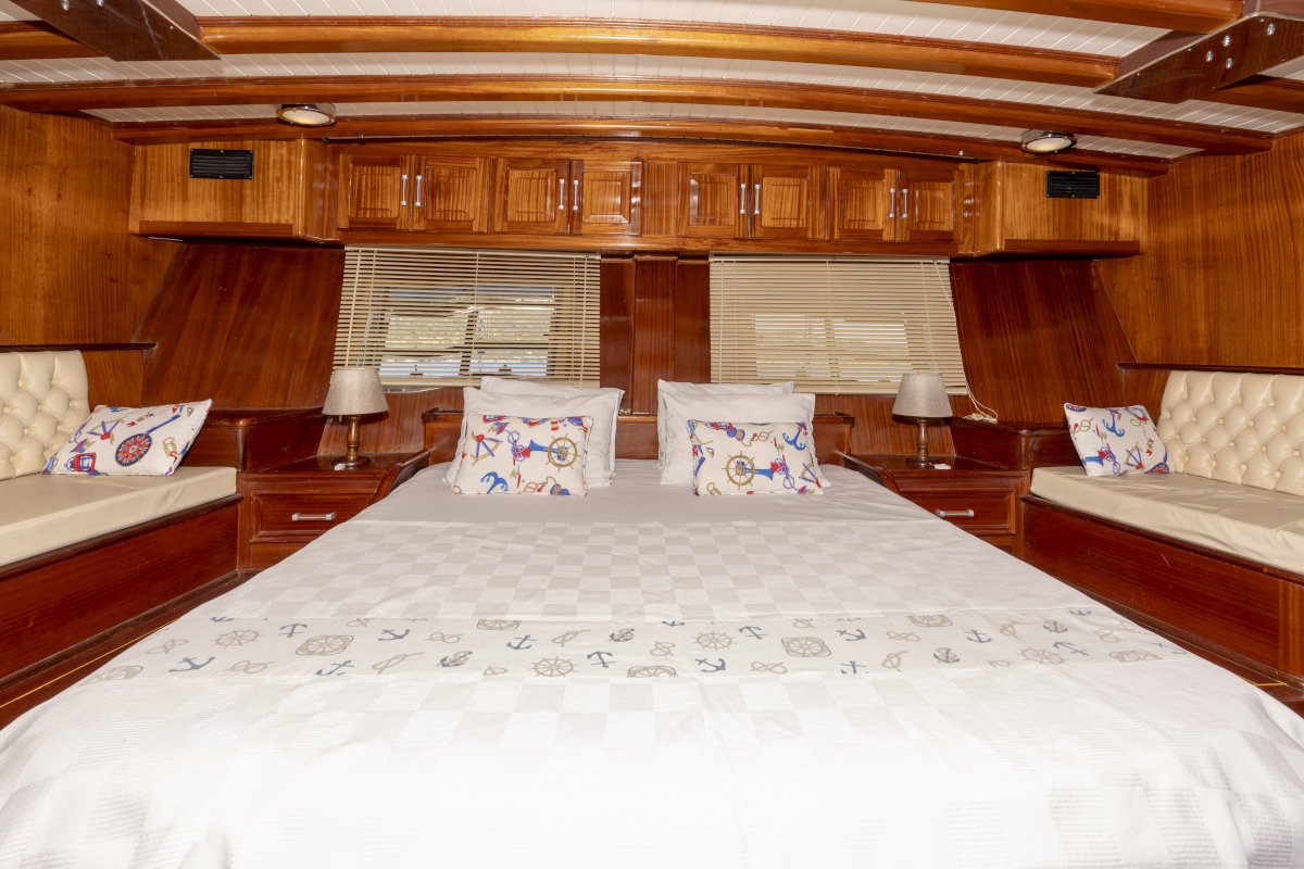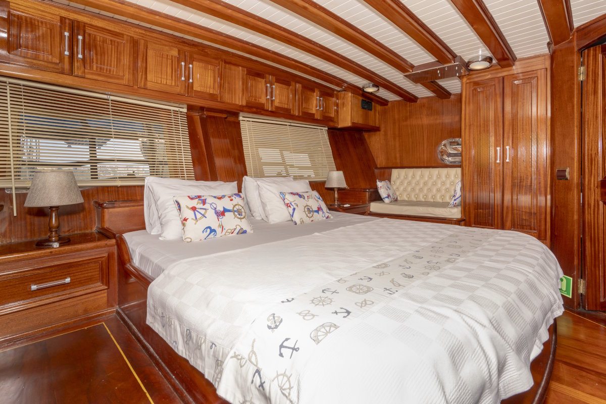 - 4 guest cabins (2 master cabins, 1 double cabin and 1 cabin with 2 separate beds) each with air-conditioning and en suite wc & shower